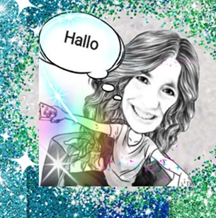 Ich Cartoon mit Rahmen und Glitzer